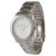Shown in Silver coloured Stainless steel, this bracelet style watch has a White face with Silver-Grey numerical time markings, Silver-Grey coloured fancy scroll-work crown at 12 Noon, your Three personalised monograms and a custom text line beneath for your title, special date, etc. Has second sweep hand. Choose your favourite style of watch, etc. Customise this item.