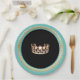 These pageant festive paper plates are great for serving up some fun (and easy clean up too) for your next pageant get together. Add your pageant theme or pageant name if desired. Shown here is an Aqua-Turquoise rim and a gleaming Gold crown print in the centre over chic Black background. Gold coloured regal trim on the rim. Personalise by using the filter option to change colour of crown or border and the "O" to change plate rim colour, or buy as designed.