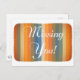 Send a message to tell them you miss them with one of our custom postcards. Adorned with a beautiful orange, blue and yellow blanket design with hand scripted letters the phrase Missing You on the front. Customise the back with your address. View our full selection of greeting cards in our Zazzle store!