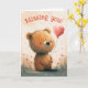 Share your love across the miles with our endearing Valentine's card, featuring a cute bear sitting alone and holding a heart-shaped balloon. The heartfelt message "Missing you!" makes it the perfect choice for expressing affection in a long-distance relationship or during an undesired separation. This unique and charming card is a wonderful way to show your love and make your valentine feel special, despite the distance. Let them know they are in your thoughts and close to your heart with this adorable and meaningful gesture.