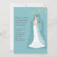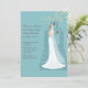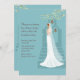 This design features a gorgeous slender bride about to enter a church. Above her a beautiful tree with white blooms compliments her lovely gown.