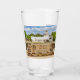 A pint glass that boldly shows the Mission San Juan, of San Antonio, Texas. A "one of a kind" souvenir of a visit to the mission in San Antonio, Texas.