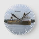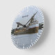 The clock did not take as long to arrive as I thought it might and was extremely well packaged. I didn't do the measurements so I didn't realize it is a little smaller than the average clock but that does not matter (just make sure you check if that's important to you).It is really nifty! It seems very solid and well made not flimsy at all. It has been going well and has kept good time in its few weeks on my wall. Nice product. Gets noticed too! Nicer in real life than the picture but true to the picture