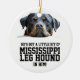Funny personalised Rottweiler Christmas ornament- For those who love Rotties and the holidays- Hilarious Mississippi Leg Hound German Rottweiler dog breed ornament for Rottie fans, dog lovers and Rottweiler owners. Shows a large photo of a Rottweiler head staring intently. Underneath in bold black letters, it reads He's got a little bit of Mississippi Leg Hound in him! Fun dog humour Christmas gift for Rottie lovers. Personalise with a name, etc, if you like. On the back side, add your own Rottweiler photo or add photo of your pet or even a human who may qualify as part Mississippi Leghound! Great gag gift. Want to buy a different funny Rottweiler gift idea with the same design? This Rottweiler face design can be bought on many other dog gifts, too, as we have this funny dog breed design on lots of products and gifts, in our angela65 Zazzle store. We have other dog breed designs as well.