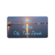 A roll of address labels featuring a photo of a Mississippi River sunrise in Baton Rouge, La.