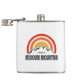 Well made flask, a little better than I had expected. Flask came in clear plastic box which gave it a nice presentation when I took it out of the zazzle packaging. Image is not printed on flask but on sticker. Don't know how this will hold up I haven't used it yet. This would make a Great gift! I plan to purchase more for friends! Cheers. I thought a little brighter than computer. Very crisp, writing wasn't