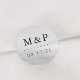 Seal your invitation envelopes, favours and more with our coastal chic monogrammed stickers. Round design features your initials and wedding date in off-black charcoal lettering with a pale grey watercolor wash background that evokes the look of fog rolling in. Coordinates with our Mist wedding invitation collection.