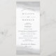 Our elegant wedding program features your ceremony details in rich off-black charcoal, accented with sheer grey watercolor washes at the top and bottom. Reverse side lists the members of your wedding party with easily editable text fields. Coordinates with our Mist wedding invitation collection.