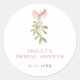 Celebrate the bride-to-be with this minimalist winter bridal shower sticker design featuring a stunning watercolor illustration of a mistletoe with a soft dusty rose coloured bow.