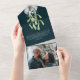 Winter Flowers and Mistletoe Elegant Christmas all in one card, envelope and photo keepsake Card - Holiday Photo card from Ricaso - designed with green and white floral detail - it's sure to be a hit with family and friends .. easy to add your own text and photo - Send your greetings in style this holiday with a personalised card with beautiful winter botanical flowers