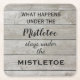 This playful coaster is accented with the cute saying, What Happens Under the Mistletoe Stays Under the Mistletoe, making it a great accessory for your holiday party. This coaster is part of the Mistletoe Holiday Collection.