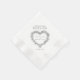 Mistletoe heart wreath drawing dark grey and white winter wedding napkins. Add your own couples name and wedding date in classic dark grey on crisp white. Other colours and matching wedding items available. © Original drawing and design by Sarah Trett for www.mylittleedenweddings.com on Zazzle.