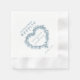 Mistletoe heart wreath botanical drawing in blue on white winter wedding napkins. Add your own couples name and wedding date in a classic rich dark blue on crisp white. Other colours and matching wedding items available. © Original drawing and design by Sarah Trett for www.mylittleedenweddings.com on Zazzle.
