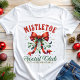 Celebrate the holiday season in Coquette style with this vintage-inspired Mistletoe Social Club Christmas design. The delicate mistletoe bow and playful typography bring a festive and feminine flair, perfect for those who love a mix of nostalgia and elegance. Whether you're attending a holiday gathering or looking for a stylish, whimsical outfit for the season, this Coquette-inspired design offers a chic way to express your holiday spirit. It’s the ideal shirt for anyone who appreciates soft, romantic details with a holiday twist.