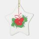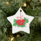 A fun illustration of mistletoe in red and green on white ceramic star shaped ornament designed to decorate your tree with fun for the holidays.