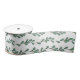 Christmas ribbon in white with a lovely pattern of mistletoe vines with green leaves and berries.