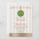 Cute and fanciful, sweet and romantic mistletoe wedding invitations with a kissing ball and pomander decorated with festive mistletoe leaves, white berries and gold ornaments hung with a red bow. Pretty scroll flourishes and a cream striped background complete this holiday and/or Christmas themed look. Artwork © Chrissy H. Studios, LLC. All Rights Reserved.