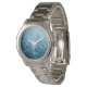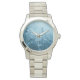 A pretty and elegant wrist watch featuring an ethereal blue floral scene.