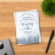 This beautiful wedding invitation features a rustic yet elegant style with lacy script calligraphy on a watercolor background of blue mountain pine or spruce trees shrouded in fog or mist. The colours are a variety of shades of dusty and steel blue, making this invitation perfect for an outdoor, wilderness, or winter ceremony. The invite is printed on your choice of clear or frosted acrylic with either a rectangle or arch cut. The partially transparent background image is lovely and unique, this invite will make a lasting impression on your wedding guests!