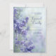 Set an ethereal and romantic tone for your celebration with this dreamy botanical layout. This design features a lush cluster of vibrant purple lavender on the left, showcasing delicate blossoms and soft green stems. The scene is anchored by a thin, dark indigo rectangular frame set against a beautiful, misty blue and white bokeh background that evokes a peaceful morning in a sun-drenched garden. The soft-focus effect and tranquil color palette provide a sophisticated, fine-art feel for your event details. This design is a stunning choice for an elegant spring wedding or a whimsical outdoor garden ceremony. Its calming lavender and misty blue palette makes it a perfect fit for a serene bridal shower, a refined engagement party, or an intimate vineyard reception. This layout pairs beautifully with themes like modern romantic, cottagecore, or fine-art botanical, and coordinates flawlessly with silver accents, slate blue linens, and natural floral arrangements.