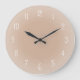 A rosy beige coloured clock with white numbers and misty fading edges or frosted look design, simple and warm with genuine charm. If you want, you can use the customise feature and select a different colour background to harmonise with your personal decor style; or, add text if you like. Beige, rosy brown or light brown tones are gentle, natural and friendly, and can symbolise inner warmth, honesty and strength. They relate to the element Earth, including clay or sand. This clock adds a cheerful rustic art touch to kitchen, living room, bedroom, family room, kids' rooms, studio; at home, workplace or cottage; or makes a great gift for friends and family for birthday, Christmas or anytime you please.