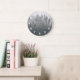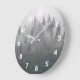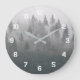 Decorate a living space with this stylish wall clock with white numerals that features a scenic photo image of misty, evergreen forest. Select your clock style and size along with hand colour. Use to decorate a living room, dining room, kitchen, bedroom, or any other room.