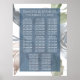 Lovely pastel floral 8 table seating chart wedding reception signage features modern sophisticated hand-painted watercolor peony rose and hydrangea flowers in soft pastel shades of smoky blue, off-white, muted marigold yellow, and blush pink embellished by botanical laurel greenery accents. This gorgeous layout features your details on a sheer slate blue overlay in a clean modern classic script. For other colors or matching products, please visit the JustFharryn Zazzle store, or contact the designer, c/o Fharryn@yahoo.com All rights reserved. #bohochic #zazzlemade