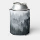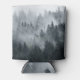 Misty Foggy Mountain Landscape with Fir Forest in Retro Style.