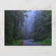 Road through Redwood National Park on a foggy day. Strong blues and greens.