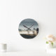 The clock did not take as long to arrive as I thought it might and was extremely well packaged. I didn't do the measurements so I didn't realize it is a little smaller than the average clock but that does not matter (just make sure you check if that's important to you).It is really nifty! It seems very solid and well made not flimsy at all. It has been going well and has kept good time in its few weeks on my wall. Nice product. Gets noticed too! Nicer in real life than the picture but true to the picture