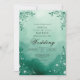 A serene watercolor wash in deep teal and mist green sets a tranquil mood, framed by delicate, ethereal foliage accents. This design evokes a sense of natural beauty and gentle romance for your special day.