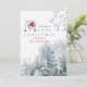 Misty Watercolor Winter Forest and Poinsettia Holiday Card