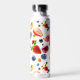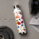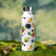 The bottle looks even better in real life. The ice cubes I put in lasts all day! I have my bottle with me all the time. It's summer and having something cold to drink feels amazing. With this bottle I always have something super cold. I have only tried the hot drink once and it lasted a long time as well. The color blue is a navy blue and the white printed on it is vibrant. It printed perfectly. I love my personalized smile water bottle.