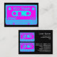 A business/profile card with a colourful duo-toned cassette tape motif. Motif on the front with contact details on the reverse decorated with additional cassette tape images. Ready to be customised with your details.