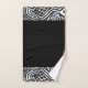 Mixed Animal Print Bathroom Towel Set. Hand towel colour: black. Graphic Design created by Donna Corless. Colours: black, white, grey. Made in the USA.