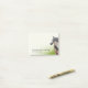 Sticky notes with a photo of a horse, calf, dog and cat cut out against a shaded green background, for large and small animal vet surgery practices.