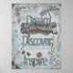 Dream, Discover, Inspire artwork on poster. This poster artwork is a print from one of my original mixed media pieces. This design is available on a variety of products from Jenn Steffen of Jenn's Emporium.