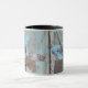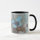 Butterfly dreams mixed media art shown on classic white mug. Soft blues and creams with a butterfly metal cutout and dream stamped heart. The artwork was made by using a combination of any and all of the following: stamps, acrylic paints, inks, fabric, paper, findings and more.  Jenn's Emporium