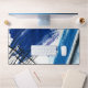 Mixed media watercolor blue abstract artistic coastal desk mat featuring an abstract painting I created, using a cold colour palette made of various shades of blue as well as black and white.