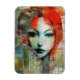 A mixed media collage with a red haired lady as the main focal point AI generated art