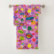 Mixed pickleball doodle on pink. Perfect as a gift for pickleball player. Bath Towels with pink pickleball motif