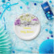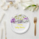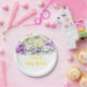 A delicately coloured assortment of flowers forms a bouquet set against a white backdrop, with name of 'baby shower' inscribed in a yellow typeface. Ready to be personalised. This paper plate is highlighted by the tranquil blooms of nature..