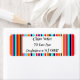 These return address labels have a simple design of vertical stripes of varying thicknesses in red, orange, purple, black, light blue, and white.