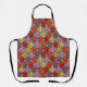 This apron has an art deco design of tulips from pentagons and trapezoids in orange, red, purple, gold, and green.