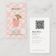 The front features a hand-illustrated cocktail paired with a soft pink checkered background, creating a refined visual identity that stands out while remaining professional. The back is clean and easy to read, with space for contact details, social handle, and a QR code so potential clients, planners, and venues can connect with you instantly.