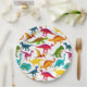 Mixture of Colourful Dinosaurs in Black Canvas Paper Plate