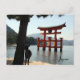 Postcard of the Itsukushima Shrine, Miyajima, Japan with deer in foreground.