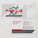 A modern business card design for Mixed Martial Arts coaches, trainers, and gyms. The front features dynamic vector illustrations of two fighters in action, combined with a bold MMA octagon logo and striking red accents. Since the graphics are fully editable, colours can be customised to match any personal or gym branding. The reverse side includes space for contact details and a service list covering striking, grappling, conditioning, private coaching, and competition prep. A versatile choice for instructors and gyms looking for a clean, professional design with strong visual impact.