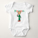 A Christmas holiday T-shirt design featuring a stick figure kid eating a candy cane and text of red and green that reads "Mmmmm".