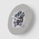 I ordered a small size of Tea Time Green & White Kitchen clock. It's just so cute and matches my kitchen decor!! The picture quality is better than I thought considering most of online orders do not meet buyers' expectations. It weighs only less than a pound. Excellent printing. You are not going to be embarrassed when you give this to your family and friends for a gift. I have failed many times on online orders for poor quality once i received them, but this one surprised me!!